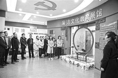 江西省景德鎮(zhèn)市紀委監(jiān)委充分挖掘本土廉潔文化資源,推動建立生動的廉潔教育實體課堂,著力鍛造忠誠干凈擔(dān)當(dāng)、敢于善于斗爭的紀檢監(jiān)察鐵軍。圖為該市紀委監(jiān)委干部參觀景德鎮(zhèn)荷塘廉潔文化教育基地,接受廉政教育。歐陽晨君 攝