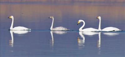 大天鵝首次光臨蘭州。 張元 攝