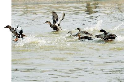 野鴨戲水。梁劍 攝