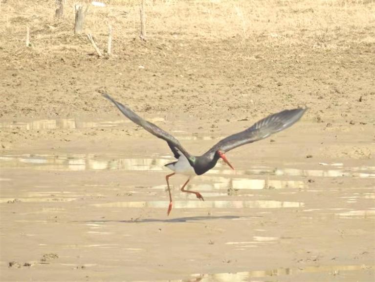 黑鸛是國家一級(jí)重點(diǎn)保護(hù)野生鳥類,喜在河流、沼澤、濕地中覓食魚、蛙、昆蟲等,繁殖于崖壁或高樹上。黑鸛在我國分布于東北、西北、華北等大部分地區(qū),分布較廣,但種群數(shù)量較少。黑鸛對覓食水域,環(huán)境安全性要求極高,水質(zhì)清澈,水體食物豐富,對棲息環(huán)境十分“挑剔”。黑鸛現(xiàn)身該區(qū)域,從一個(gè)側(cè)面印證了該區(qū)域水質(zhì)向好。據(jù)介紹,連年來,連城保護(hù)區(qū)開展生態(tài)治理修復(fù)工程,生態(tài)環(huán)境明顯改善,該局加強(qiáng)水域內(nèi)生物多樣性保護(hù)工作力度,引來大天鵝、黑鸛、大白鷺、普通秋沙鴨、赤麻鴨、綠頭鴨等水鳥來此棲息停歇,成為美麗風(fēng)景線。
