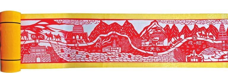 用剪紙藝術(shù)再現(xiàn)古絲綢之路的盛景,國(guó)家級(jí)非遺項(xiàng)目定西剪紙省級(jí)代表性傳承人付忠民經(jīng)過長(zhǎng)時(shí)間的構(gòu)思和調(diào)研,又歷經(jīng)5個(gè)月,終于創(chuàng)作出了長(zhǎng)達(dá)23.38米的剪紙長(zhǎng)卷——《古絲綢之路全圖》,再現(xiàn)了絲路古道的文化藝術(shù)魅力,該長(zhǎng)卷曾一舉創(chuàng)下世界紀(jì)錄協(xié)會(huì)“世界上最長(zhǎng)的剪紙長(zhǎng)卷”的世界紀(jì)錄。