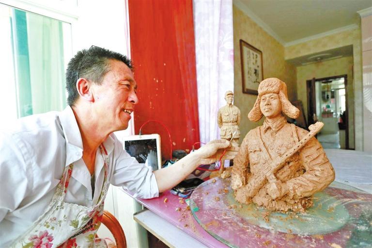 甘肅省平?jīng)鍪幸会t(yī)院職工趙鐵軍,利用閑暇之余,制作了一尊泥塑“雷鋒像”,借此表達對雷鋒同志的緬懷,進一步弘揚雷鋒精神。