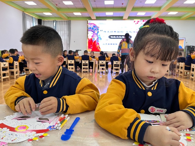 中國教育報-中國教育新聞網(wǎng)訊(記者尹曉軍通訊員張亮楊兆玉)近日,甘肅省張掖市山丹縣東街幼兒園邀請縣博物館聯(lián)合開展“傳承經(jīng)典國韻文化浸潤童心”傳統(tǒng)文化進(jìn)校園活動?;顒又?,博物館的老師不僅為孩子們講述了京劇臉譜的內(nèi)涵、特點及分類,還帶領(lǐng)孩子們模仿了戲曲選段中的動作,現(xiàn)場唱了戲曲名段。在老師的講解示范下,孩子們巧手繪制了臉譜?,F(xiàn)場孩子們熱情高漲、積極參與,傳統(tǒng)文化悄無聲息在孩子們心中“生根發(fā)芽”。