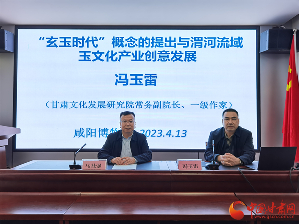 中國甘肅網(wǎng)4月13日訊 為進(jìn)一步促進(jìn)博物館學(xué)術(shù)研究交流創(chuàng)新,激發(fā)博物館發(fā)展活力,持續(xù)推動(dòng)博物館高質(zhì)量發(fā)展,陜西咸陽博物院于4月13日下午3點(diǎn)舉辦第二期“咸博大講堂”專題講座,甘肅文化發(fā)展研究院常務(wù)副院長(zhǎng)、一級(jí)作家馮玉雷作了題為《“玄玉時(shí)代”概念的提出與渭河流域玉文化產(chǎn)業(yè)創(chuàng)意發(fā)展》的學(xué)術(shù)報(bào)告。咸陽博物院院長(zhǎng)馬社強(qiáng)主持講座。