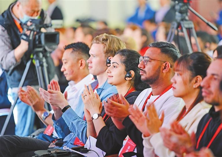 4月27日,甘肅旅游推介及國際旅行商合作大會(huì)舉辦,與會(huì)嘉賓聆聽推介。