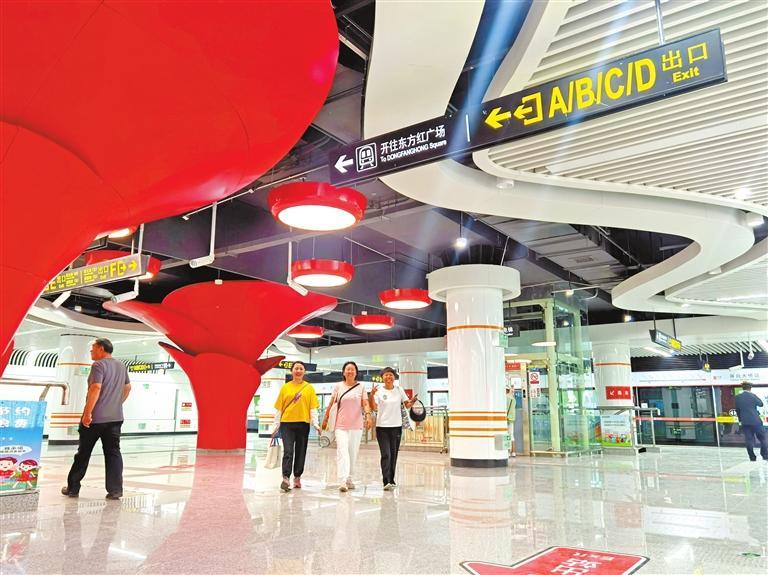 “我住在附近時(shí)刻關(guān)注著工程進(jìn)展,圍擋板拆除后,今天近距離接觸站口還是第一次。”在雁白大橋站A口,關(guān)注開通試運(yùn)營儀式的李阿姨抱著小孫子早早就來到地鐵站,李阿姨準(zhǔn)備當(dāng)天上午地鐵開通時(shí),乘坐首趟列車,由雁白大橋到東方紅廣場感受地鐵2號線一期全程的快速與舒適。