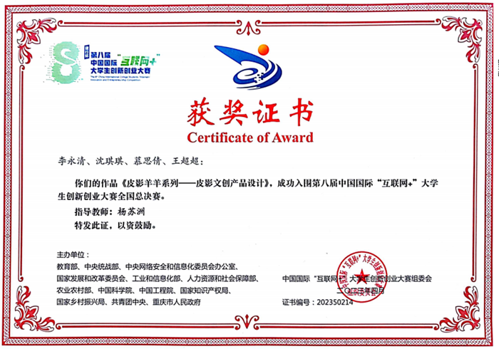 中國甘肅網(wǎng)7月12日訊(西北角·中國甘肅網(wǎng)記者 余守萱 通訊員 郭海霞)近日,從中國國際“互聯(lián)網(wǎng)+”大學生創(chuàng)新創(chuàng)業(yè)大賽組委會傳出喜訊,由環(huán)縣第二中學楊蘇洲老師指導,學生李永清、沈琪琪、慕思倩、王超超四人共同創(chuàng)作完成的作品《皮影羊羊系列——皮影文創(chuàng)產(chǎn)品設(shè)計》,成功入圍第八屆中國國際“互聯(lián)網(wǎng)+”大學生創(chuàng)新創(chuàng)業(yè)大賽全國總決賽。