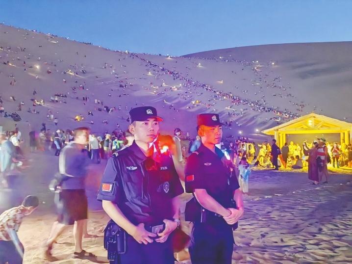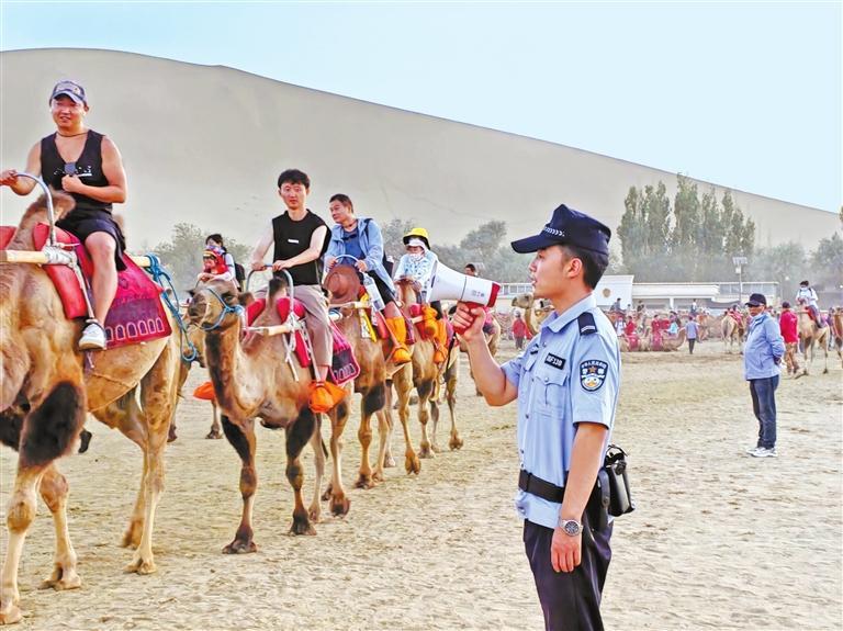 面對隨之而來的社會治安防控壓力,敦煌公安立足旅游特色,結(jié)合夏季治安打擊整治行動,精準(zhǔn)布警、精細(xì)管控、精致服務(wù),時刻踐行“民警就是導(dǎo)游,隊(duì)伍就是風(fēng)景,管理就是服務(wù),執(zhí)法就是守護(hù)”的敦煌旅游警務(wù)理念,用“5A”警務(wù)服務(wù)“5A”景區(qū)。