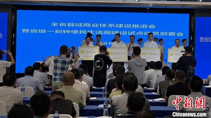8月3日,甘肅省縣域商業(yè)體系建設(shè)推進會暨省級一刻鐘便民生活圈建設(shè)試點動員部署會在蘭州舉行。甘肅省商務(wù)廳為第二批“省級示范步行街”和“甘肅老字號”授牌。中新社記者 馮志軍 攝