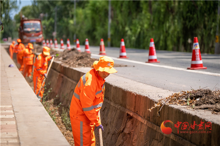 七月以來,蘭州公路發(fā)展中心累計(jì)完成環(huán)蘭公路路面清掃5000余公里,清理路域垃圾1622.4立方米,清理、疏通邊溝542.4公里,清理橋梁伸縮縫506道、泄水孔1922個(gè),橋涵清淤493.3立方米,更換維修波形梁護(hù)欄、防眩網(wǎng)等交安設(shè)施1095米,油路修補(bǔ)6284.3平方米,公路預(yù)防性養(yǎng)護(hù)11.445萬平方米,全力打造“暢安舒美”環(huán)蘭公路,為游客出入提供路網(wǎng)保障,讓游客第一印象就對蘭州留下好感。