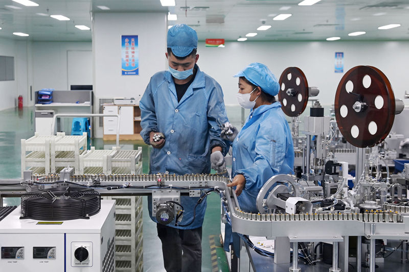 位于金昌經(jīng)濟(jì)技術(shù)開(kāi)發(fā)區(qū)的甘肅金宏翔新能源有限公司,工人在電池生產(chǎn)線上作業(yè)。記者 范培珅 攝