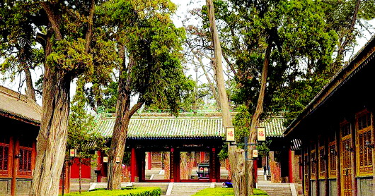 許多游客初來伏羲廟,對這里高大參天的千年古樹尤為喜愛。古柏蒼槐,叢郁繁茂,密嚴森列,為隴上之奇觀。宮門東的“龍槐”,為唐代所植。歷經(jīng)千年風(fēng)雨滄桑,樹干已空朽,而殘軀斷皮上又長出新枝,老樹換新顏,生機勃勃。