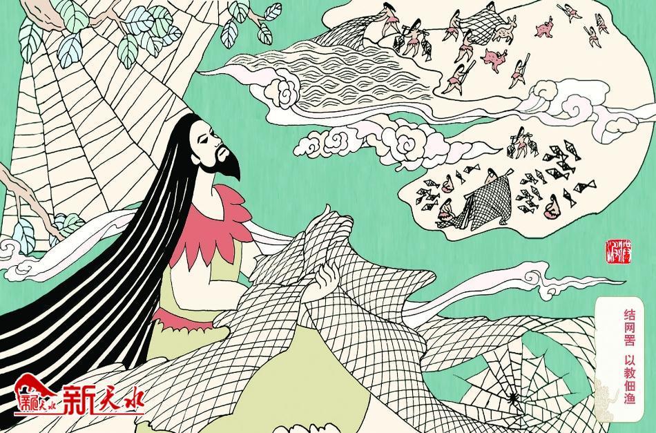 之后,大家又從伏羲編織的漁網(wǎng)中得到啟發(fā),并仿照他的方法編織出了鳥(niǎo)網(wǎng),人們?cè)儆螟B(niǎo)網(wǎng)去捕鳥(niǎo)。這些發(fā)明創(chuàng)造,為改善人們的生活條件起到了積極作用。