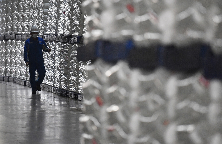 蘭州石化公司工作人員在庫(kù)房?jī)?nèi)查看產(chǎn)品。新華社記者 陳斌 攝