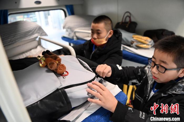 1月15日,“隴原學子游敦煌”敦煌文化研學季專列發(fā)班儀式在甘肅蘭州舉行,圖為學生在K9667次列車上。九美旦增 攝