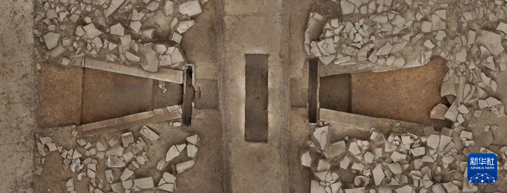 這是甘肅省隴南市禮縣四角坪遺址的排水設施(2024年1月8日攝,無人機照片)。新華社發(fā)(四角坪遺址考古隊供圖)
