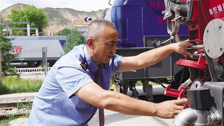 中國(guó)甘肅網(wǎng)7月9日訊 據(jù)蘭州晚報(bào)報(bào)道(記者 譚安麗 文/圖 通訊員 趙童)仲夏時(shí)節(jié),陽光明媚,沐浴著大西北的陽光,一列飛馳的鋼鐵巨龍?jiān)陔]海線群山中穿行。駕駛室內(nèi),56歲的司機(jī)劉曉明手握閘把、眼睛緊緊注視前方,操縱著機(jī)車穿山越谷,快速馳騁。