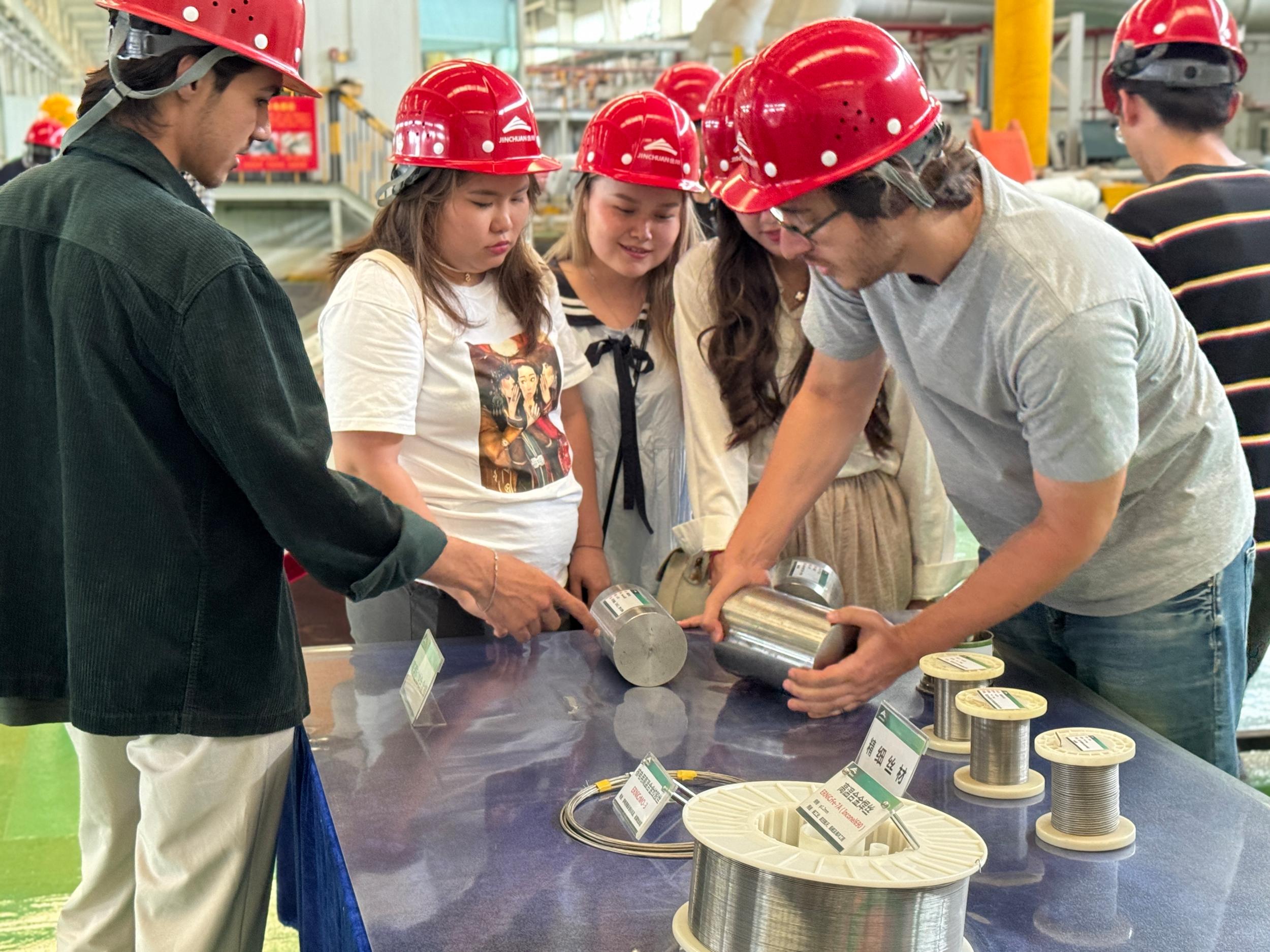 “國際體驗官”們在鎳合金產(chǎn)品展示區(qū)交流互動
