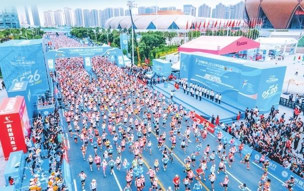2024年5月26日7時(shí)30分,“蘭州銀行杯”2024蘭州馬拉松在蘭州奧體中心鳴槍開(kāi)賽,來(lái)自美國(guó)、德國(guó)、澳大利亞、肯尼亞、韓國(guó)等22個(gè)國(guó)家和地區(qū)以及全國(guó)各地的4萬(wàn)名選手相聚金城,用奔跑釋放生命活力。2024年是蘭州馬拉松新十年的開(kāi)端之年,首次采用“全半程混合分區(qū)”的出發(fā)機(jī)制,并對(duì)賽道進(jìn)行優(yōu)化升級(jí),將絲路文化、黃河文化融入?yún)①惙酮?jiǎng)牌的設(shè)計(jì)中,還開(kāi)展甘肅省博物館、甘肅簡(jiǎn)牘博物館、蘭州市博物館、讀者雜志社的文創(chuàng)展銷(xiāo)活動(dòng),邀請(qǐng)參賽選手免費(fèi)參觀9個(gè)景區(qū),為廣大選手提供更加優(yōu)質(zhì)、精彩的賽事體驗(yàn)。