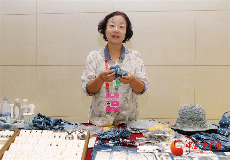 在第八屆進(jìn)博會(huì)的現(xiàn)場(chǎng),甘肅館以其獨(dú)特的人文底蘊(yùn)吸引了眾多目光。展館內(nèi),弧形山脈造型的背景,仿佛展現(xiàn)著甘肅的壯美風(fēng)光,而慶陽(yáng)香包、敦煌絲巾等精美展品,則如璀璨明珠,訴說著甘肅的文化魅力。就在這其中,來自平?jīng)龅墓欧ㄋ{(lán)染技藝展臺(tái)格外引人注目,一件件藍(lán)染作品散發(fā)著獨(dú)特的草本氣息,向世界展示著非遺的獨(dú)特魅力,而這些作品的創(chuàng)作者,正是平?jīng)鏊{(lán)染技藝的市級(jí)非遺傳承人李梅。