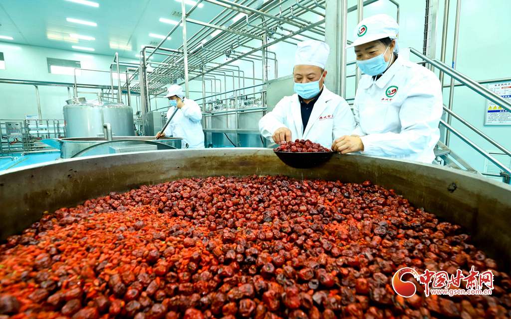 11月19日,張掖市臨澤縣一家食品企業(yè)的紅棗數(shù)字化車間里,全自動(dòng)飲料生產(chǎn)線高效運(yùn)轉(zhuǎn),每日可產(chǎn)出紅棗枸杞營(yíng)養(yǎng)飲料、棗夾核桃、棗片等休閑食品十余噸,供應(yīng)青海、新疆、內(nèi)蒙古、寧夏等地市場(chǎng)。