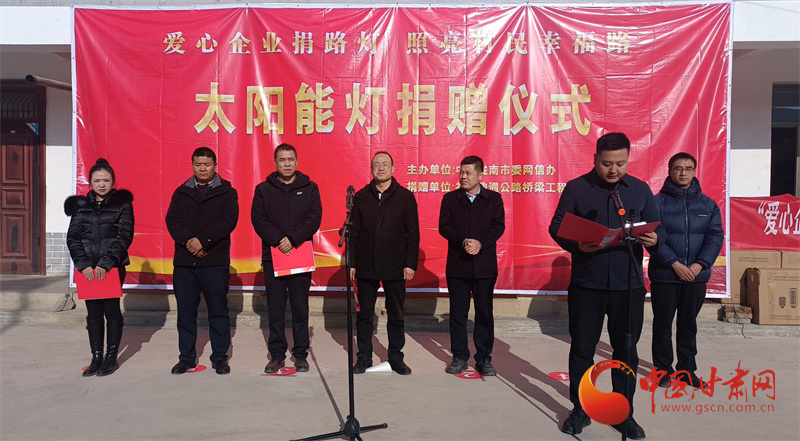 當(dāng)日,隴南市委網(wǎng)信辦還聯(lián)合禮縣工商聯(lián)、禮縣鼎通公路橋梁工程有限公司舉辦了“愛心企業(yè)捐路燈 照亮村民幸福路”捐贈(zèng)儀式,為李壩村捐贈(zèng)價(jià)值5萬元的260盞太陽能路燈,助力美麗鄉(xiāng)村建設(shè),照亮村莊夜晚。