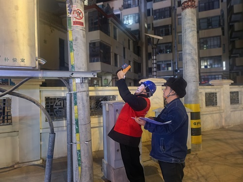 “10千伏124北西線03號開關(guān)設(shè)備紅外測溫正常……”在夜巡過程中,工作人員手持紅外測溫儀,沿著線路及配變逐桿逐段進(jìn)行仔細(xì)檢查,重點(diǎn)對變壓器、斷路器、熔斷器等設(shè)備進(jìn)行測溫,對接頭、線夾、刀閘等易發(fā)熱部位進(jìn)行了詳細(xì)檢查,及時掌握設(shè)備運(yùn)行情況,不放過任何一個可能存在的安全隱患。對于夜巡過程中發(fā)現(xiàn)的隱患,工作人員做到了及時登記,及時整改,絕不拖延;對于不能現(xiàn)場整改的隱患,則制定了詳細(xì)的整改計(jì)劃,并列入問題清單,以便集中整改落實(shí),切實(shí)做到隱患缺陷早發(fā)現(xiàn)、早處理。