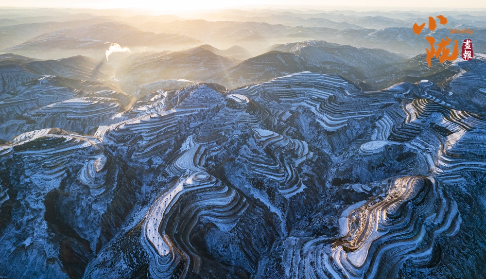 雪是最沉靜的造物者,將原本硬朗的塬、梁、峁、溝,都蒙上柔軟的雪線,在皚皚大地上寫滿層層疊疊的詩行,那是黃土的年輪,在熹微天光里,靜訴光陰的故事。