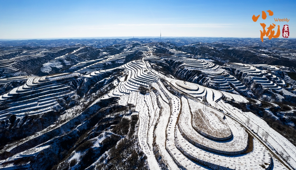 塬上樹木被雪輕輕點染,披上素白衣裳,與覆雪的梯田虛實相映,構成一幅疏密有致、氣韻生動的天然水墨畫,靜置于蒼茫天地間。