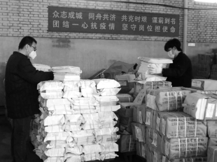 為減少人員聚集,張家口市店教材用書部與部分學(xué)校溝通聯(lián)系,根據(jù)不同的年級和班級劃分了領(lǐng)書的時段,采取分年級分時段領(lǐng)書的方式,由每個班級家長委員會的家長到校取書,離校后再把書分給本小組的家長。張北分公司采取了教材教輔裝袋進校、分時段發(fā)放的方式。員工們加班加點連夜為張北縣二中3600名學(xué)生配發(fā)圖書,確保第二天送書到校。赤城分公司積極與學(xué)校溝通對接,縣城學(xué)生的教材全部采取郵寄的方式快遞到家,農(nóng)村偏遠地區(qū)也都送達了行政村。