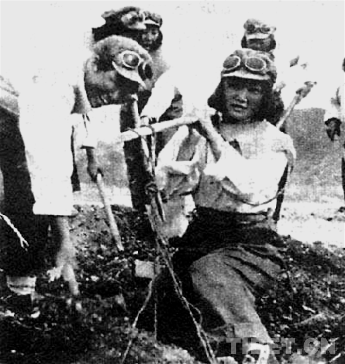 圖為《天路行軍1950——千名女兵徒步進藏紀(jì)實》中插圖:搶修機場的女兵