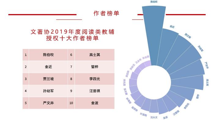 2019年度閱讀類教輔授權(quán)十大作者榜單。文著協(xié)供圖