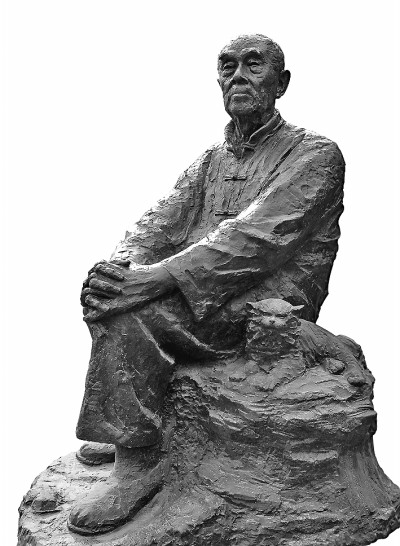 這尊坐像中,季羨林先生靜靜地坐在石頭上,雙手抱膝,目視遠(yuǎn)方,身旁臥著一只他喜愛的小貓。選自《紀(jì)峰雕塑札記》