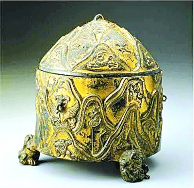 東漢銅鎏金山紋獸足樽,現(xiàn)藏于臺(tái)北故宮博物院 資料圖片