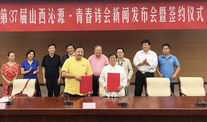 沁源縣委書(shū)記金所軍介紹沁源縣盛產(chǎn)油松、褐馬雞,村村有秧歌隊(duì)和籃球場(chǎng),有山有水,美麗又美好。他將作為“全國(guó)森林旅游示范縣”的沁源縣詩(shī)意概括為“三晉大地的香格里拉”“近在咫尺的桃花源”。沁源縣委宣傳部部長(zhǎng)黃貴河對(duì)沁源縣的文學(xué)創(chuàng)作情況及第37屆“青春詩(shī)會(huì)”活動(dòng)承辦設(shè)想進(jìn)行了介紹。發(fā)布會(huì)結(jié)束后,沁源縣政府副縣長(zhǎng)李建萍與《詩(shī)刊》事業(yè)發(fā)展部副主任藍(lán)野簽定了合作協(xié)議。
