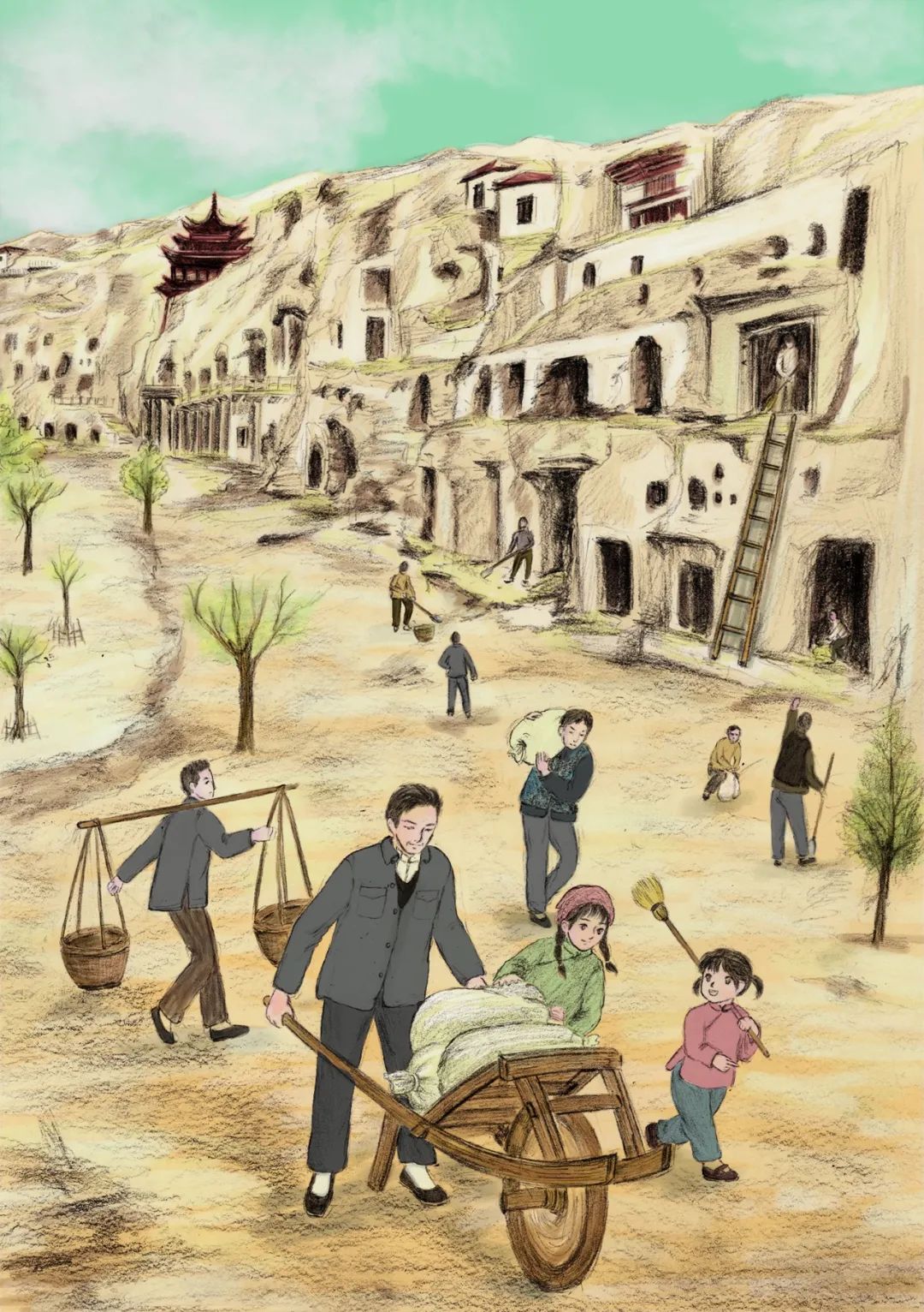 《敦煌小畫(huà)師》的故事,以民國(guó)時(shí)候國(guó)立敦煌研究所初創(chuàng)時(shí)期為背景,以一個(gè)小女孩欣潔的眼光,摹刻了一群以敦煌為文化藝術(shù)圣地而奮斗而獻(xiàn)身的藝術(shù)家和學(xué)者群體,這個(gè)群體以欣潔的父親為代表,他們舍棄溫暖濕潤(rùn)的家鄉(xiāng),而遠(yuǎn)赴那個(gè)遙遠(yuǎn)荒涼的所在。因?yàn)槟抢镉卸鼗?,因?yàn)槟抢锉4嬷磺Ф嗄昵暗恼滟F文物和彩塑壁畫(huà),還因?yàn)槟抢锛毙栌腥藖?lái)保護(hù)、修復(fù)和弘揚(yáng)。他們來(lái)了,他們?cè)谶@片戈壁之地安家扎根,在動(dòng)蕩的社會(huì)時(shí)局下開(kāi)始了為家為國(guó)的擔(dān)當(dāng),也開(kāi)始了人生理想和價(jià)值的實(shí)現(xiàn)。這一切,以一個(gè)孩子的眼光來(lái)看,幾乎就是交織著欣喜和失望、歡喜與憂(yōu)愁,從茫然無(wú)知到誠(chéng)摯熱愛(ài)的一段生動(dòng)故事。《敦煌小畫(huà)師》故事情節(jié)的設(shè)定,有起伏有高潮,有親情之愛(ài),有田野之趣,更有人與人之間和諧相助的人性之美,讀起來(lái)有聽(tīng)一首鄉(xiāng)村音樂(lè)的韻律感。我覺(jué)得,一部?jī)?yōu)秀的兒童文學(xué)作品,應(yīng)該就是這個(gè)樣子。