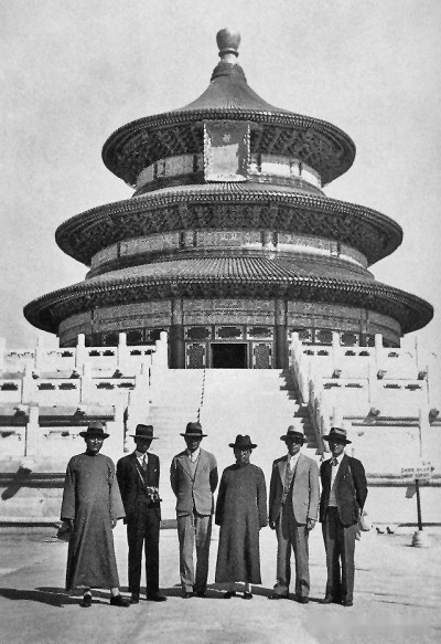 1935年5月9日,天壇圜丘壇開工,朱啟鈐、梁思成、劉敦楨、林徽因等古建專家,作為工程的技術(shù)顧問,楊廷寶則以基泰工程司總建筑師的身份指導(dǎo)工程實(shí)施的全過(guò)程。圖為祈年殿修繕完工紀(jì)念照。資料圖片