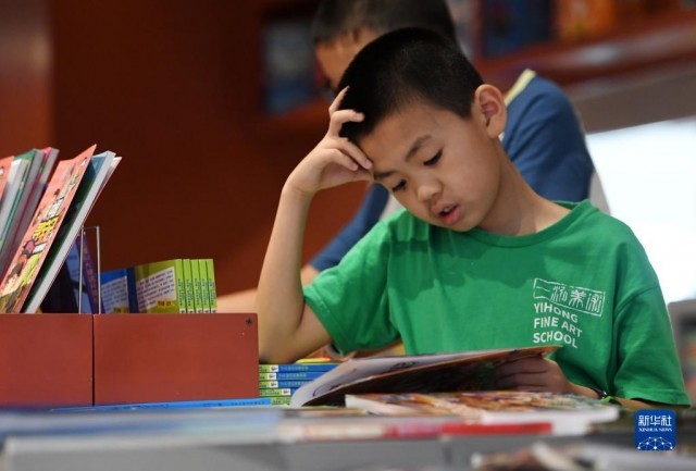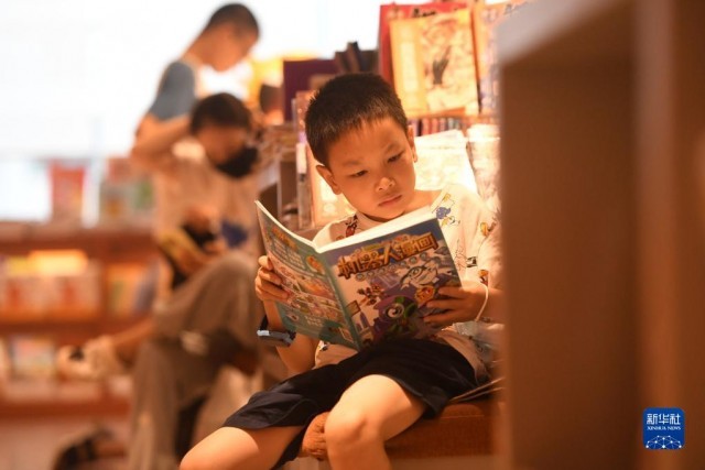 進入暑假,廣西南寧市不少學生來到書店閱讀,享受書香假期。