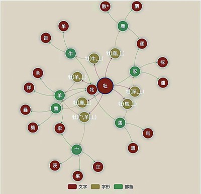 偏旁分析法是通過分析、識別偏旁來考釋古文字。歷史考證法是根據(jù)不同時期形體的特征及演變規(guī)律來考釋古文字。人工智能知識圖譜技術與這兩種方法相關。知識圖譜是描繪實體之間關系的智能網(wǎng)絡,能夠整合部件、字形、詞義幾個層次的古文字知識??梢愿鶕?jù)文字偏旁系聯(lián)圖譜,從而展示出那些具有相同偏旁的文字及對應形體;知識圖譜也具有挖掘文字演變規(guī)律的潛力,進而為專家提供幫助??梢姡诠盼淖盅芯窟^程中,人工智能技術可以從多個維度為專家提供輔助。