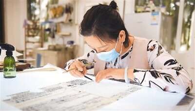 安徽博物院文物科技保護(hù)中心紙質(zhì)文物修復(fù)室的工作人員對古籍文物進(jìn)行修復(fù)。新華社記者 周 牧攝