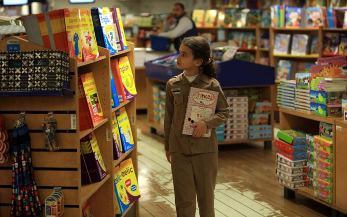 2月13日,在約旦亞喀巴港,一名女孩在“望道號”上挑選書籍。