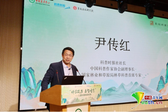 科普時(shí)報(bào)社社長(zhǎng)、中國科普作家協(xié)會(huì)副理事長(zhǎng)、國家林業(yè)和草原局林草科普首席專家尹傳紅發(fā)表題為“激發(fā)想象力和探求欲的科普閱讀”的主題演講。尹傳紅認(rèn)為科普閱讀可以與孩子的智力發(fā)育同步進(jìn)行,科學(xué)可能是最能彰顯問題、發(fā)現(xiàn)問題、解決問題的重要領(lǐng)域,科普閱讀能幫助孩子增長(zhǎng)知識(shí)、增加智慧、增進(jìn)思想。