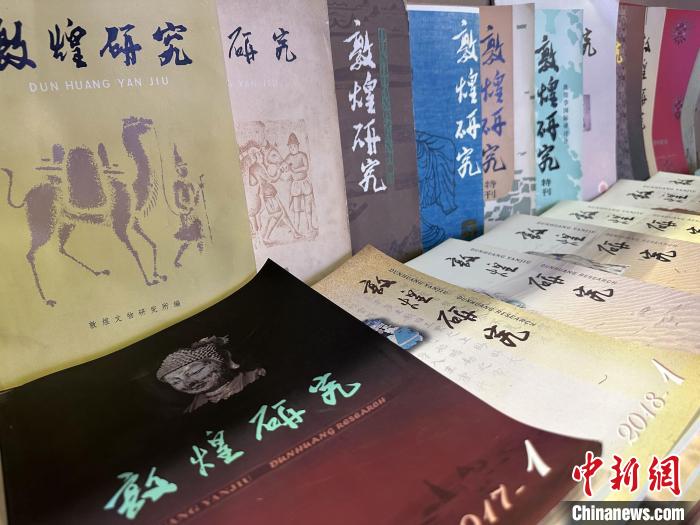 圖為會場展出歷年出版的《敦煌研究》。中新社記者 馮志軍 攝
