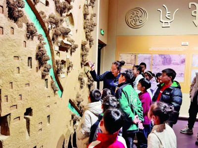 在殷墟博物館新館參加研學(xué)活動(dòng)的孩子們聆聽(tīng)講解。殷墟博物館供圖