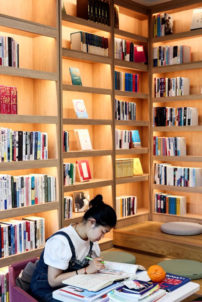 5月23日,讀者在日照市東港區(qū)城市書房櫻花園館閱讀。