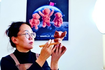 烏海“黃河泥娃”傳承人張勇在制作泥娃。光明日報記者 郭俊鋒攝