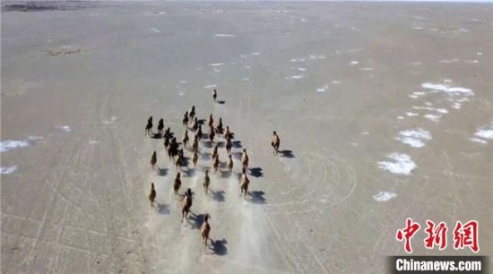 3月初,設(shè)于敦煌西湖國家級自然保護區(qū)的紅外相機,拍攝到了大群野駱駝的視頻和照片。 敦煌西湖國家級自然保護區(qū)管理局供圖
