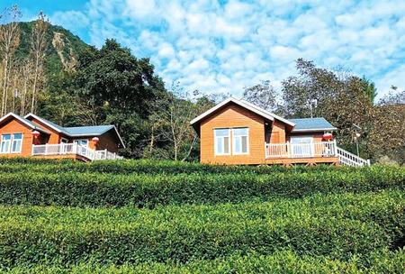 走進(jìn)山頂?shù)牟鑸@,林中隱居的幾戶人家,柴門不掩,偶爾幾聲犬吠。竹林中,幾聲鳥鳴使得空曠的山野格外幽靜。輕煙飄過,淡淡的茶香漂浮在空氣中,閉著眼睛仔細(xì)嗅去,直沁心脾。