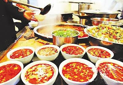 在晾面的時(shí)候,主婦開(kāi)始炒菜,做湯頭。做菜前,先要熟些新鮮的油潑辣子,在辣面中調(diào)入少許精鹽與調(diào)和粉,將熱好的胡麻油“嗞拉”一聲傾入辣子面中,香辣之味頓時(shí)充滿(mǎn)一室。然后開(kāi)始燴菜做湯頭。只見(jiàn)主婦有條不紊地將切好的菜丁逐一擱進(jìn)油鍋里,反復(fù)翻炒,適時(shí)放入大香、桂皮、草果、生姜、花椒等制成的混合調(diào)料與精鹽,等香味炒出來(lái)了,便漩入提前燒好的開(kāi)水,火關(guān)小,讓其慢熟。