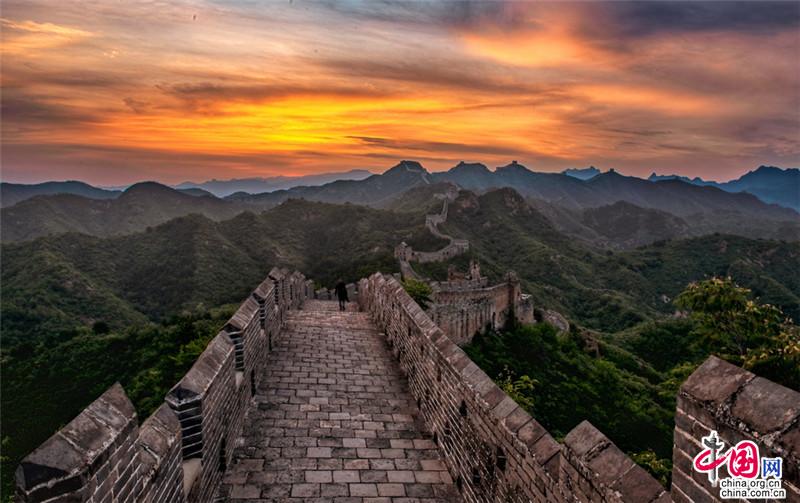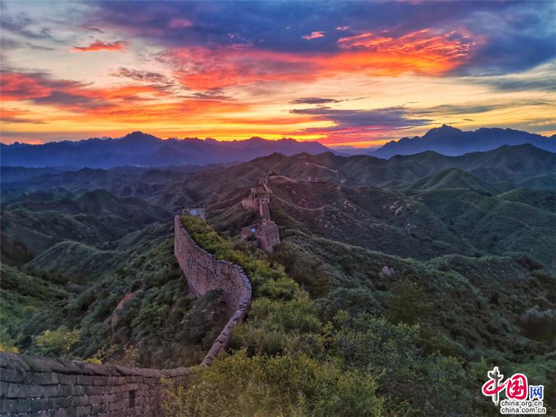 金山嶺長(zhǎng)城,仿佛一部鴻篇巨制,光芒萬(wàn)丈的日出中巨龍飛舞。